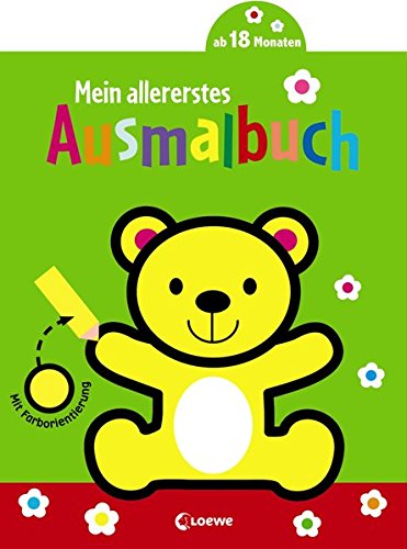 Mein allererstes Ausmalbuch Bär Bücher ~ Meiner Meinung nach zu wenig Seiten immerhin muss man das Heft ja nicht auf einmal ausmalen Dazu wenig inspirierend auf einer Seite wird eine durchgängig grüne Bommelmütze vorgeschlagen auf der nächsten ein komplett grüner Frosch